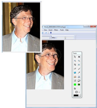 Caricature Studio bringt drei Hauptverfremdungseffekte mit. Man verzerrt den ausgewählten Bereich eines Fotos, lässt ihn wie einen Ballon anschwellen oder verdreht ihn wie eine Spirale. Die Software enthält auch einige grundlegende Werkzeuge zur Bildbearbeitung wie Pinsel, Radiergummi oder Filter.